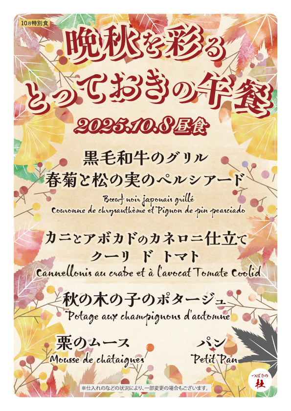 10月の特別食は、秋を感じる華やかなフレンチコース。
