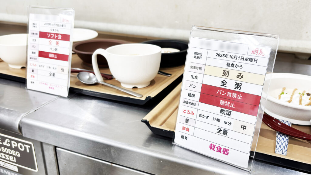 つばさの杜の食事は、これからも「人が最期まで楽しめるのは食事だからこそ、その食事は最高のものを提供したい」という思いを基(もと)に、味はもちろん、医師・看護師・ヘルパー・厨房スタッフなど多職種が連携し、ご入居者様に合わせた食事の提供に努めています。