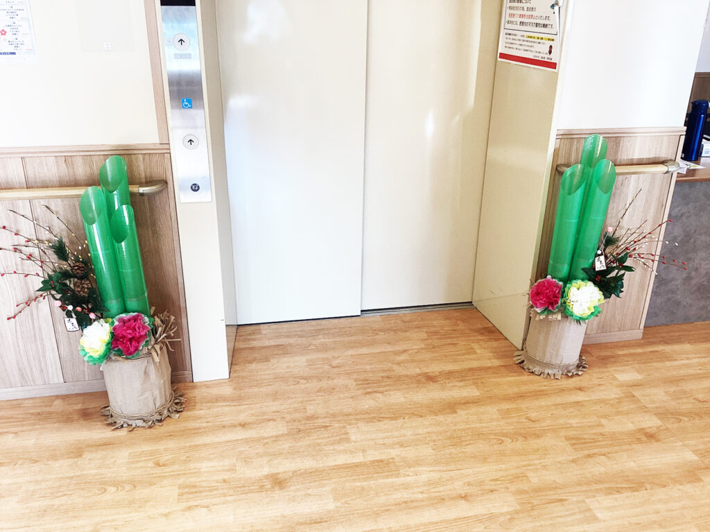 昨年12月末、新年を迎える準備として、エレベーターの横に門松が飾られました。